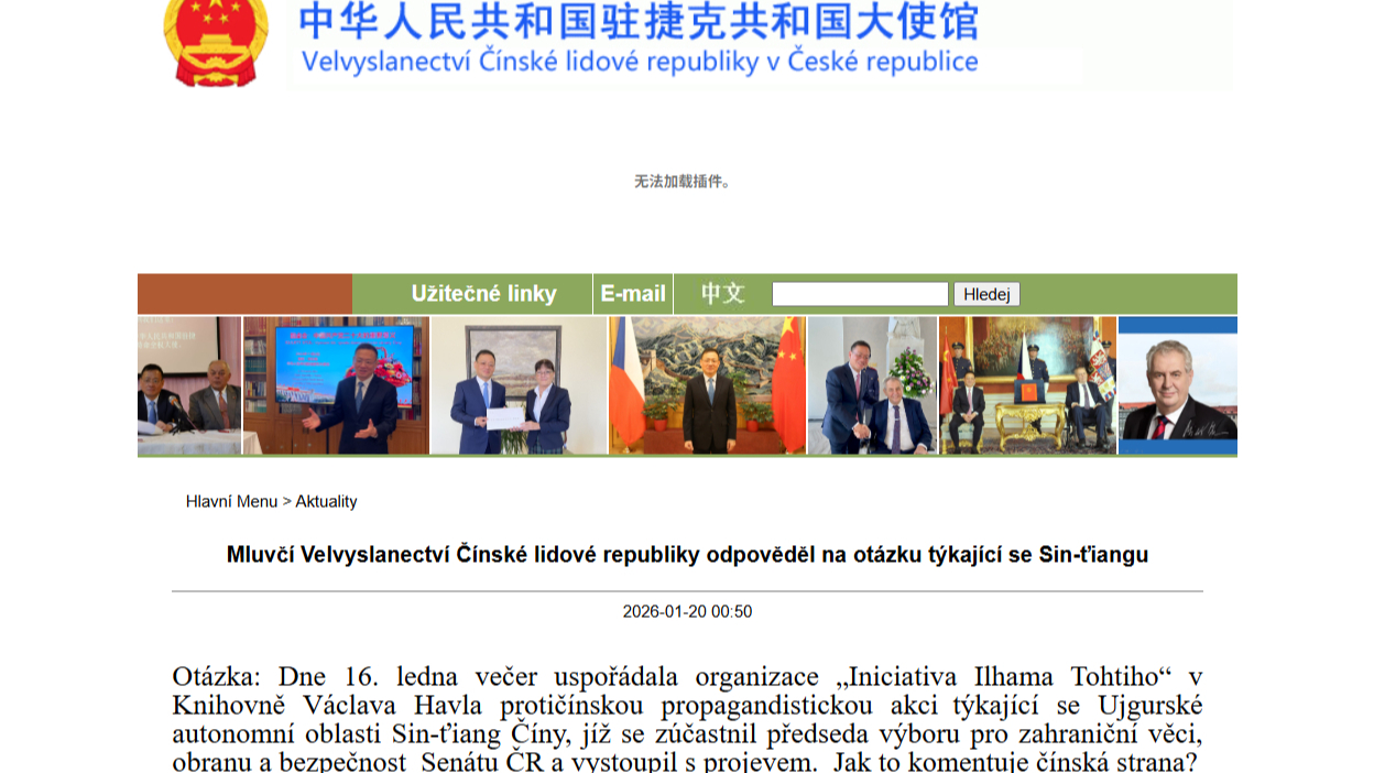 Mluvčí Velvyslanectví Čínské lidové republiky odpověděl na otázku týkající se Sin-ťiangu2026-01-20 17:35:27ShareProč se „dialog s Čínou“ stal globálním konsensem?Proč se „dialog s Čínou“ stal globálním konsensem?25-Jan-2026Xi Jinping pogratuloval Yoweri Kaguta Museveniovi k znovuzvolení za prezidenta Ugandy23. lenda zaslal zprávu Yoweri Kaguta Museveniovi, aby mu pogratuloval k znovuzvolení za prezidenta Ugandy.24-Jan-2026Xi Jinping zaslal blahopřejný telegram ke zvolení Tô Lâma generálním tajemníkem ÚV KS VietnamuDne 23. ledna Xi Jinping (Si Ťin-pching), generální tajemník Ústředního výboru Komunistické strany Číny, zaslal blahopřejný telegram Tô Lâmovi k jeho zvolení generálním tajemníkem Ústředního výboru Komunistické strany Vietnamu.23-Jan-2026